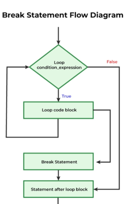 The break keyword is used to break out a for loop, a while loop or a switch block.