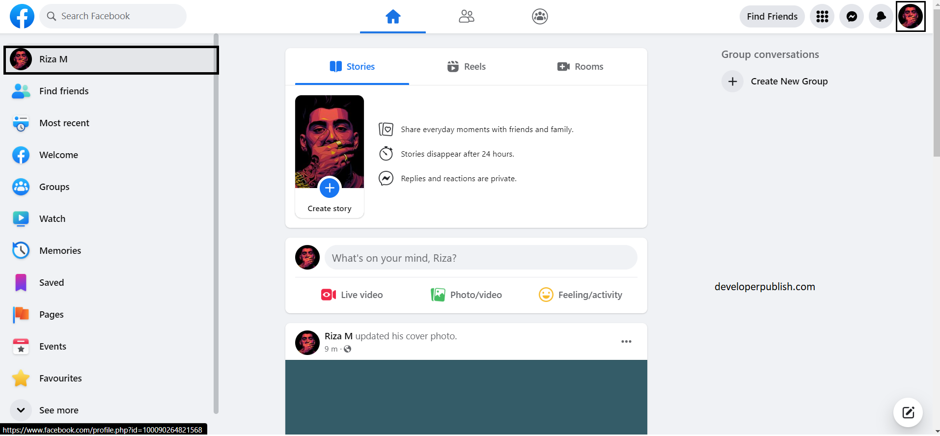 - That leads to your profile page, where you can see your personal information with your profile picture and cover picture.