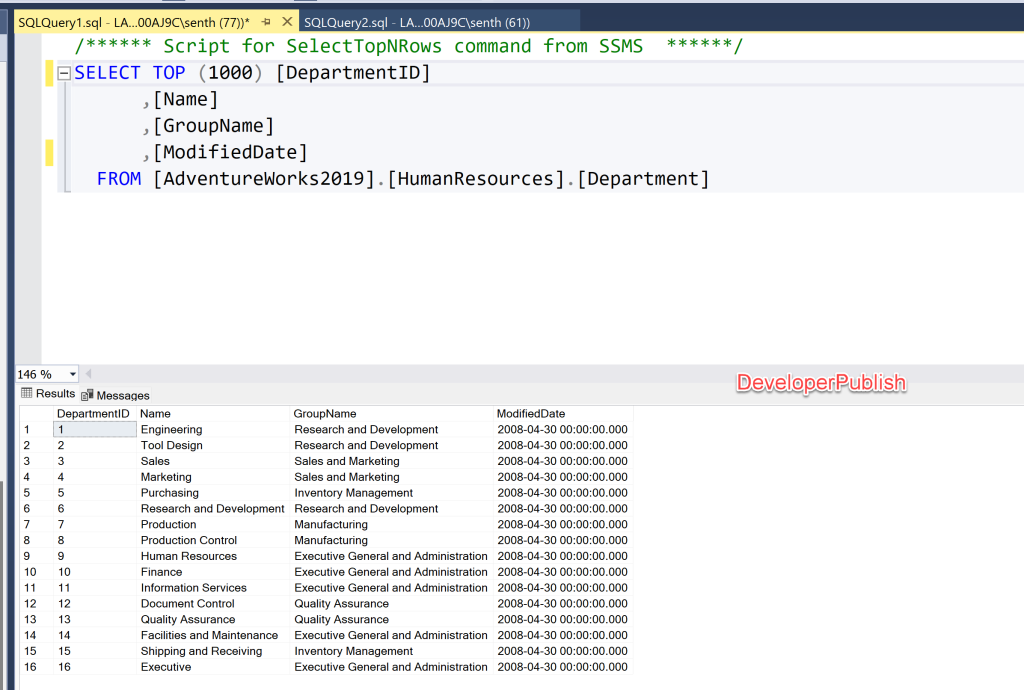 FROM [AdventureWorks2019].[HumanResources].[Department]In this query, the TOP clause specifies a negative value (-1000), which is not allowed and will trigger the error message.