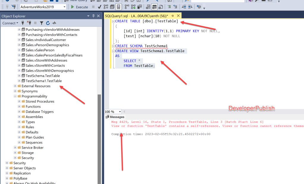 Interesting fact – When you run the same CreateView script as shown above, you’ll receive the SQL Error Message 4429 instead of “Object already exists” error. So confusing isn’t it ?