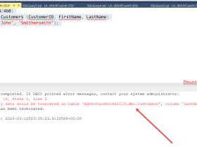 SQL Server Error Msg 2628 – String or binary data would be truncated in table ‘%.*ls’, column ‘%.*ls’. Truncated value: ‘%.*ls’.