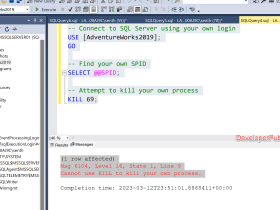 SQL Server Error Msg 6104 – Cannot use KILL to kill your own process.