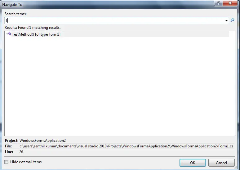 The Navigate To in Visual Studio is a simple but very useful feature for finding symbols in the source code in Visual Studio 2010. This feature exists in the earlier version of the Visual Studio as well.